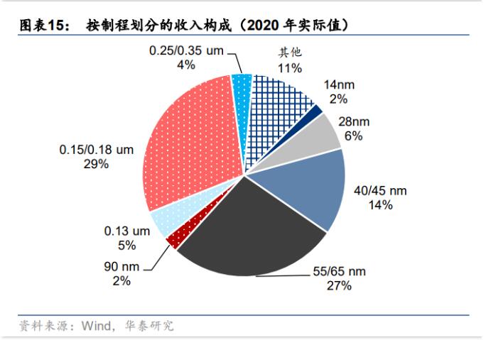 28nm占营收的比重也仅为6%,大部分收入还是依赖成熟工艺,即90~45nm。