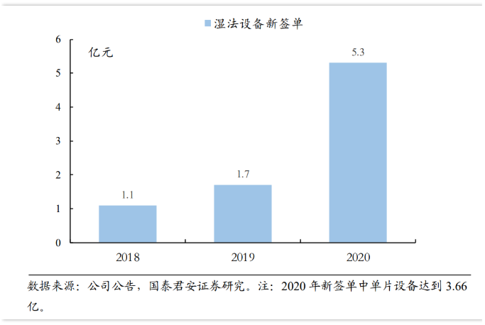 2020年,至纯科技湿法清洗设备全年出货超30台,实现收入2.18亿元,客户包括华润微、楚微、中车、燕东科技、台湾力机电等企业。