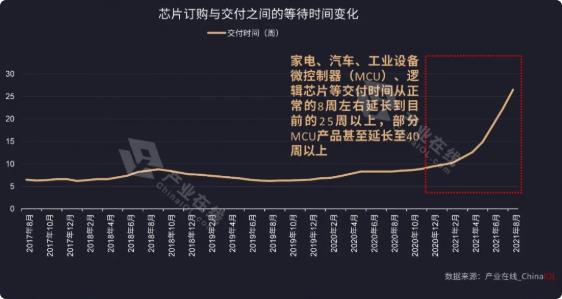 从2017年8月至今,微控制器和逻辑芯片的交付时间分别从8周延长到25周以上、从2个月延长到半年,有的MCU产品甚至延长40周以上。长期缺芯,必然导致供不应求。从去年年底开始,芯片就开启连续涨价的模式,不光是芯片涨价,整个产业链包括上游硅片、生产设备、光刻胶、特种气体、代工厂的代工费都在上涨。