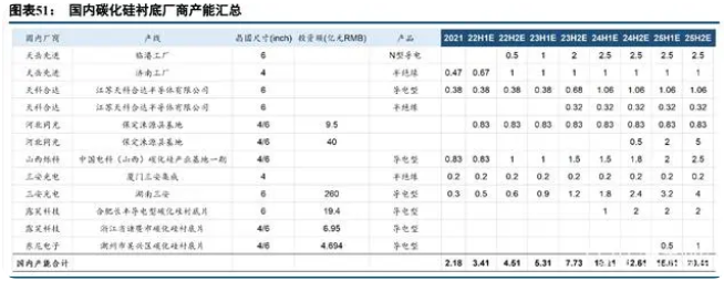 国内碳化硅衬底主要供应商包括山东天岳、天科和达、三安光电、山西硕科、河北同光。目前,国内前三大市场是山西和山西。硕科和天科在一起。公开资料显示,碳化硅衬底销量前三名分别为3.5亿片(2020年)、约3亿片(2020年)、1.55亿片(2019年)。对比未来五块板的产能规划,2025年河北同光产能最大。月产能达到5.83万件,年产能达到70万件,达产后产值4.5-6亿元。第二名是三安光电。 2025年厦门三安、湖南三安碳化硅基板总产能将达到4.2万片/月,山东天岳碳化硅基板月产能为2025年底。这2.5万片为导电基板,占公司总产能的71.4%。