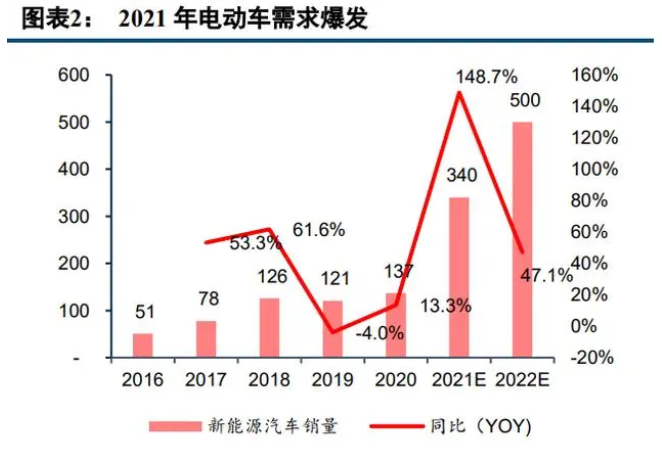 国内电动车销量占据全球电动车市场的半壁江山,但是由于疫情影响,欧美 IGBT 大厂海外工厂产能利用 率较低,英飞凌车载 IGBT 平均交期在一年以上,国内汽车主机厂由于缺芯影响严重制约汽车销售。国内自主 品牌厂商作为电动车的主力军,率先导入国产 IGBT 芯片产品,这给了国产 IGBT 芯片崛起的历史性机遇。