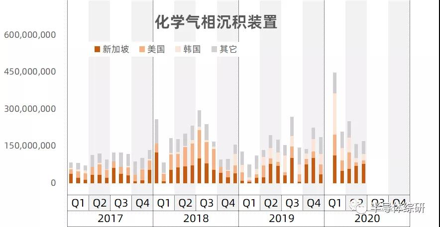 而从进口国家地区分布上看,CVD设备的最主要来源居然是新加坡。这可能是美日供应商在新加坡的分公司生产或组装后直接出口到大陆的。后续有机会我会再调查一下细节,也欢迎读者提供线索