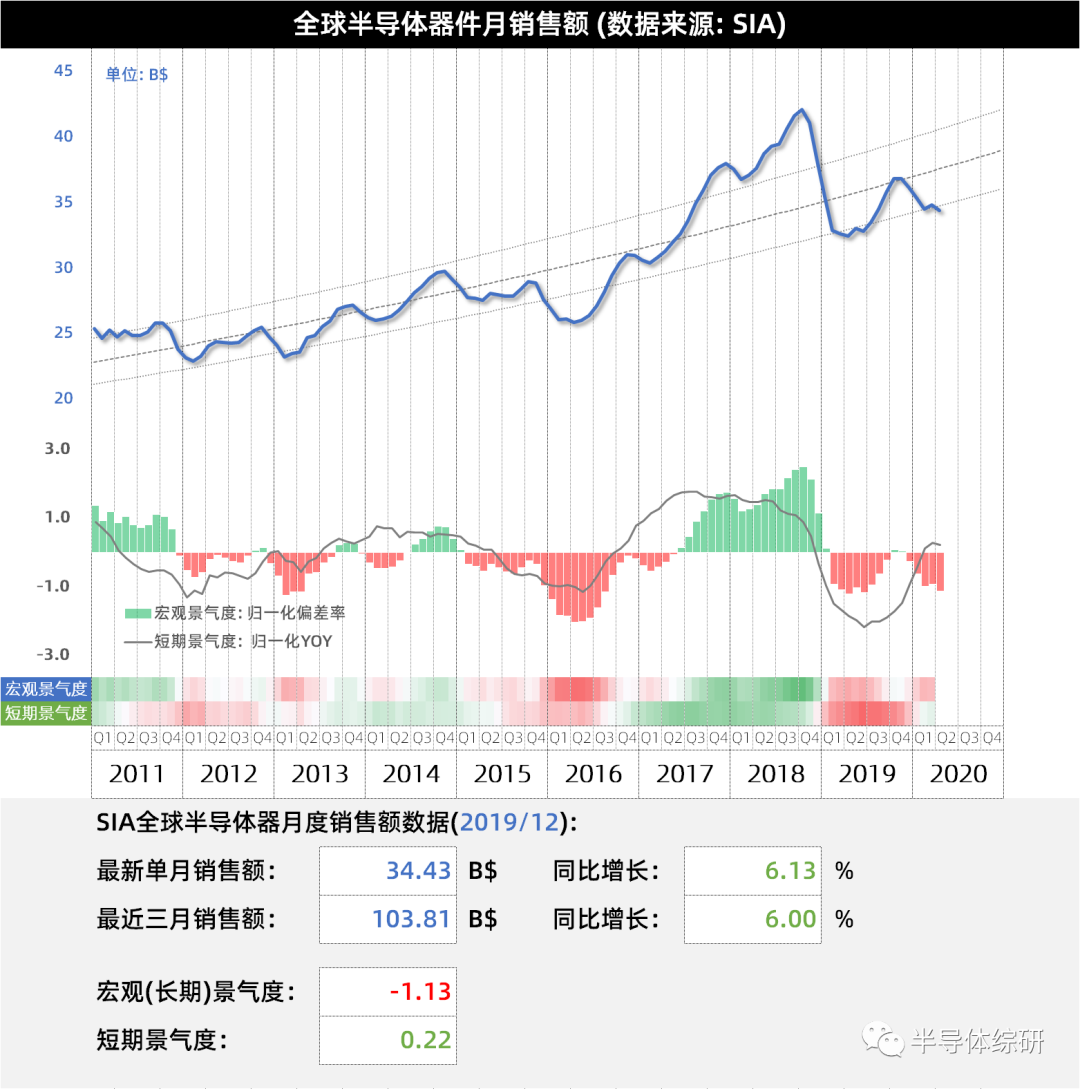 最近,美国SIA公布了4月份的全球半导体器件销售额数据:和上月相比,4月份的销售额小幅下跌,和去年同期相比增长也仅为6.1%。销售数据有突破正常动态区间的下限、进一步下探可能,后续形势不容乐观