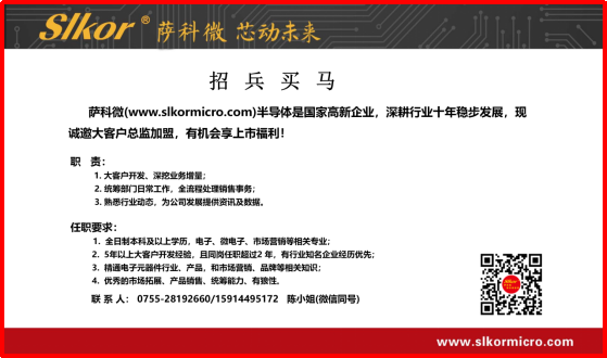 3、金航标与萨科微(slkormicro.com)年初七开工大吉!即日起,业务咨询、样品申请及技术支持已全面恢复,欢迎广大客户朋友随时联系我们。同时,公司正大量招聘销售、采购员等,诚邀感兴趣的朋友加入我们的团队,共启新程!