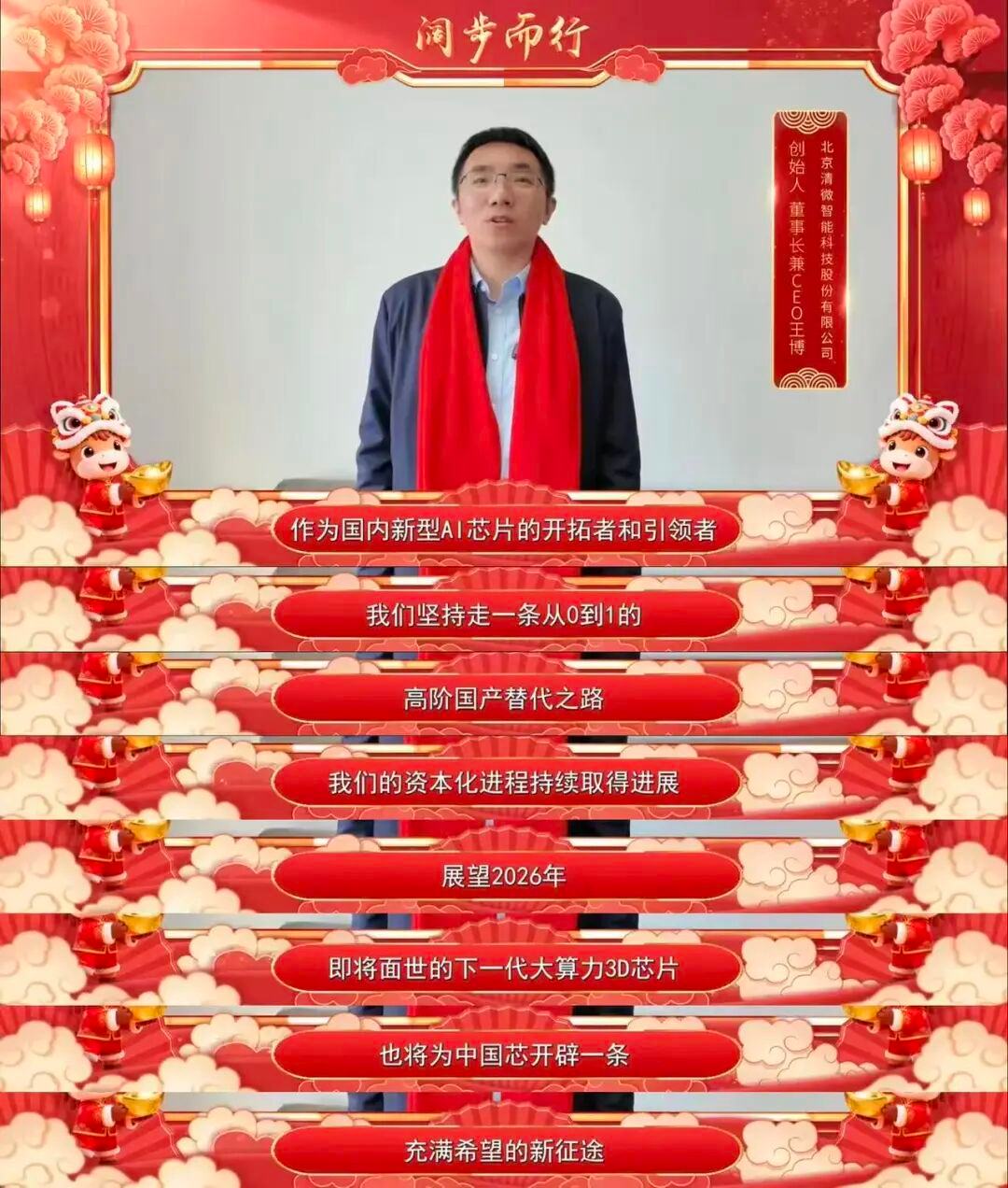 马年新春一到,科技圈大佬的新年贺词可不只是拜年,更是藏满行业风向的剧透窗口。这边京东集团刘强东在新春贺词中喊话要持续加码人工智能,那边 Soul CTO 陶明预告将重点布局AI+社交赛道,而一家 AI 芯片明星公司的表态,直接把期待值拉满 ——清微智能 CEO 王博在新华网的新春贺词里提前剧透:新一代大算力 3D 芯片即将亮相,而且上市进程也要按下加速键!