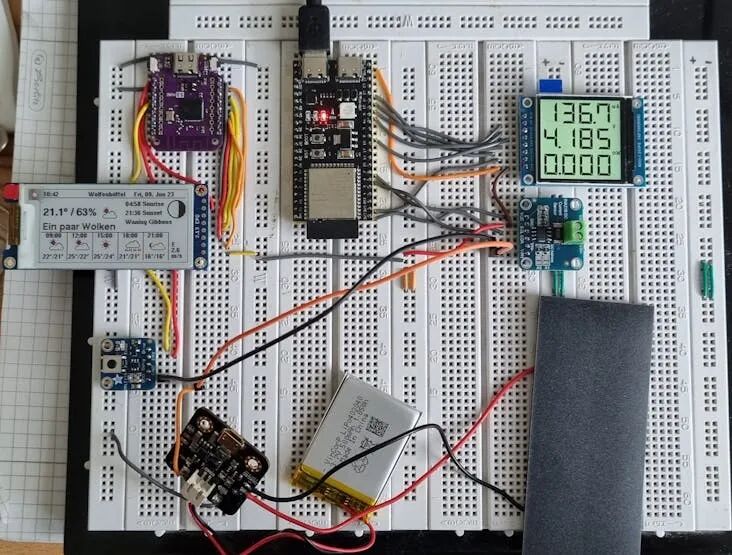 想做一块全天候、完全无线、几乎“零待机功耗”的天气看板?这个项目把关键路径走通了:ESP32-S3 + 三色电子墨水屏 + 太阳能采能 + 硬件定时上电。目标形态是——贴在窗边,白天靠阳光给电池充电,