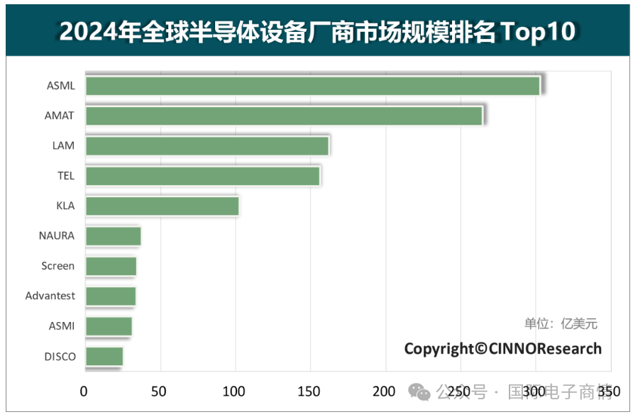 2024年全球半导体设备厂商市场规模排名Top10